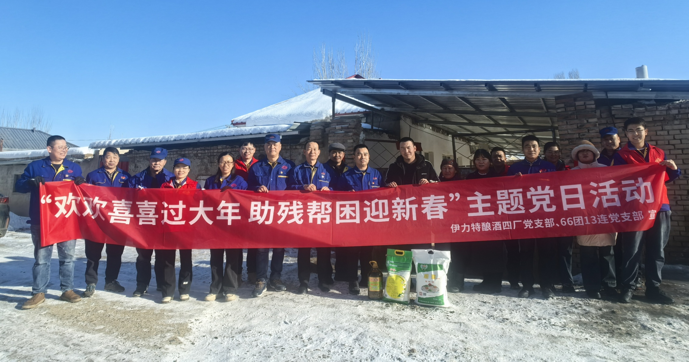 1月10日下午,在春節(jié)來臨之際,伊力特釀酒四廠黨支部和66團13連黨支部聯(lián)合開展“歡歡喜喜過大年·助殘幫困迎新春”主題黨日暨陽光行動志愿服務“送思想、送法律、送安全、送文化、送愛心”“五送”活動,帶著新春的祝福和慰問品,走訪慰問66團13連3戶困難職工家庭。20余名黨員干部、青年志愿者參加此次活動。