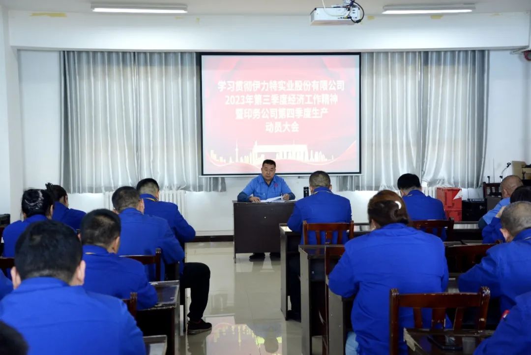 10月10日下午,伊力特印務(wù)有限責(zé)任公司召開傳達(dá)學(xué)習(xí)股份公司第三季度經(jīng)濟(jì)工作精神暨印務(wù)公司第四季度生產(chǎn)動(dòng)員大會(huì),深入分析印務(wù)公司前三季度經(jīng)濟(jì)運(yùn)行情況,剖析主要存在問題,對(duì)第四季度生產(chǎn)經(jīng)營(yíng)工作進(jìn)行安排,提出工作思路和建議,研究部署下一步生產(chǎn)工作。印務(wù)公司董事長(zhǎng)、總經(jīng)理宋崇東主持會(huì)議,各車間部門負(fù)責(zé)人、全體業(yè)務(wù)人員參加會(huì)議。